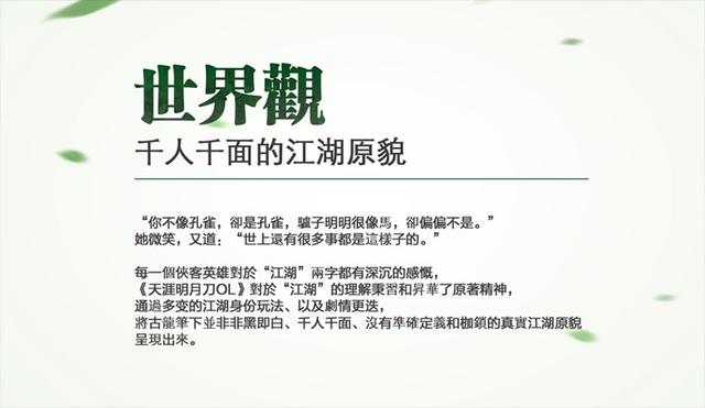 最后郑小龙品鉴了世界观,他认为在制作团队的努力和电影大师的加持下,《天涯明月刀》真正还原了古龙先生笔下的复杂而真实的江湖(预订),并非非黑即白的世界。游戏中每个人的行为都有理由,都有自己的善恶面,有些人身不由己,也有人活出自己的人生……没有准确定义和枷锁的江湖才是真实的江湖。游戏传递的核心与古龙先生的想法一致,团队在制作的过程中也就核心世界观的问题多次与古龙著作管理发展委员会进行沟通,在陈可辛大师的指导下,一起力求还原古龙先生笔下的那个世界。