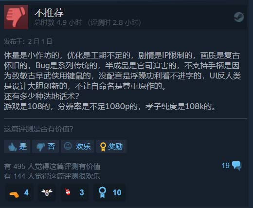 当然,河洛工作室之前作品的老问题也都暴露了出来,譬如说建模劣质、BUG众多、优化堪忧、画面复古等等,搞得河洛老粉这一次终于爆发了,集体轰炸评论区希望官方可以给出一个说法,别在骗情怀了。