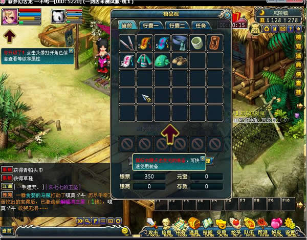 宝典系统:毫不吝啬的说这是个强大的辅助器啊,打开即可查看当前等级可做的所有活动,包括实力怎么提升、经验、银两等获得,一目了然,还有更犀利的功能一键传送,虽然得付出一定代价,不过个人觉得还是物有所值啊,想想你跑师门时任务完成后一个传送回去就可交任务了多方便快捷。