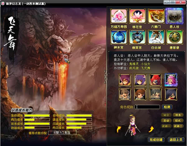 初入游戏:创建角色有八大门派、16个角色人物,可自由选择,当然每个职业都有着各自的优缺点,创建角色界面每个职业都有着详细的介绍,自己看介绍可选择搭配喜欢的角色和理想的职业,这点无疑对新老玩家都有很大的帮助。就目前游戏体验来看各职业间的配合还是很不错的,所以不要担心因为职业冷门而出现没人组队情况而错过自己最喜欢的角色以及职业。角色创建成功,那么意味着你的职业将不可变动,所以在创建的时候一定要慎重选择自己要玩的职业。