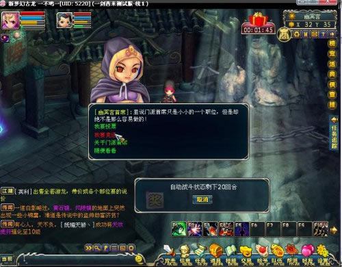 挂机系统:玩游戏挂机杀怪练级那是必须的,所以说挂机系统一定得要给力,游戏里面挂机系统可自动遇敌、自行选择是否杀暗雷BOSS这功能还不错,美中不足的是有些职业自动战斗中不可自动释放技能,还好我是外功职业可以普通攻击,伤害也还过得去,不过为什么大部分职业都可战斗中自动释放技能就只有个别的不能释放技能呢?难不成是职业歧视??不过据内部人员透露内挂系统正在优化,优化后每个职业都可自动战斗中自动释放技能还新增了不少功能,我表示很期待!