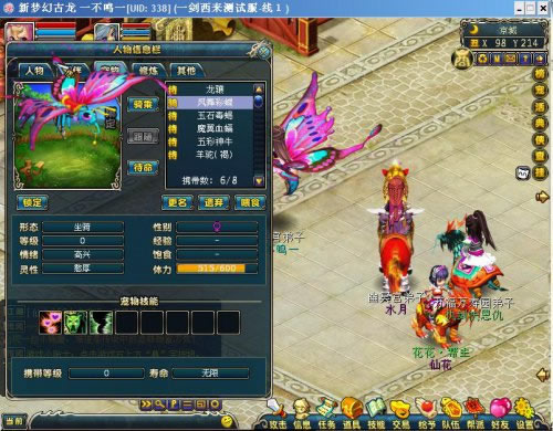 人物界面:融合了人物信息、同伴信息、修炼信息、宠物信息、其他信息功能,ALT+C回合游戏常有的快捷打开方式,打开一个人物界面即可查看多种信息,去除了多种操作,很容易让人接受,当然界面过多也会导致无法快速查看单一信息问题,就我个人而言我还是愿意使用多种信息栏共存。