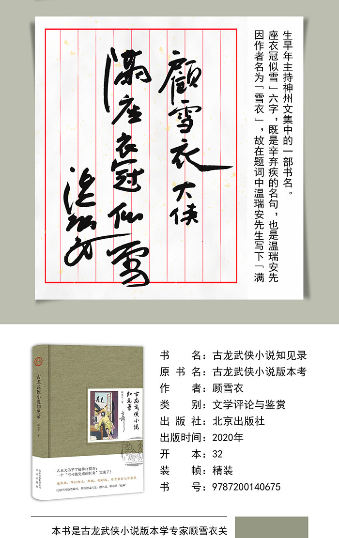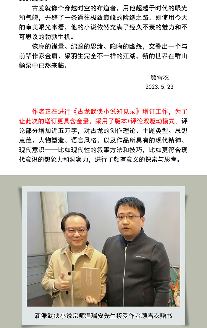 - ·顾雪衣《古龙武侠小说知见录》精装本已上市(1)